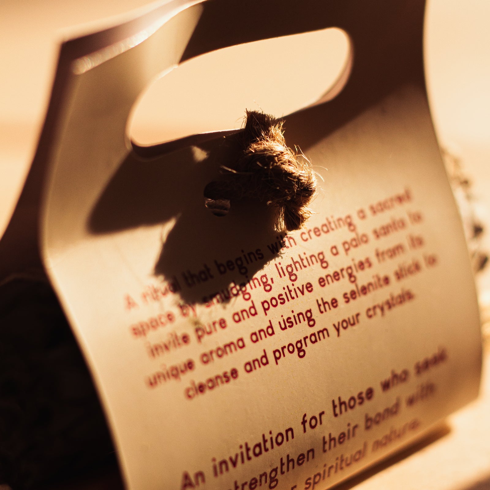 A ritual that begins with creating a sacred space by smudging, lighting a palo santo to invite pure and positive energies from its unique aroma and using the selenite stick to cleanse and program your crystals. An invitation for those who seek to strengthen their bond with their inner spiritual nature.